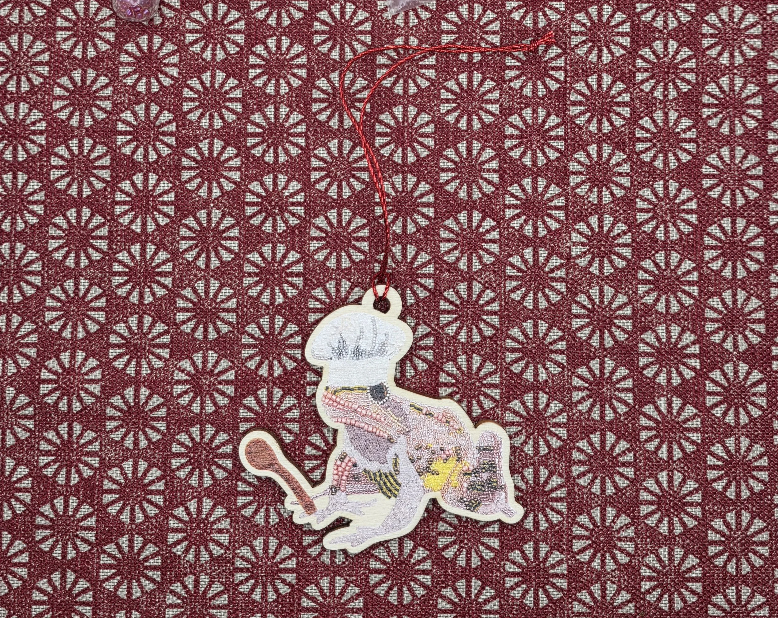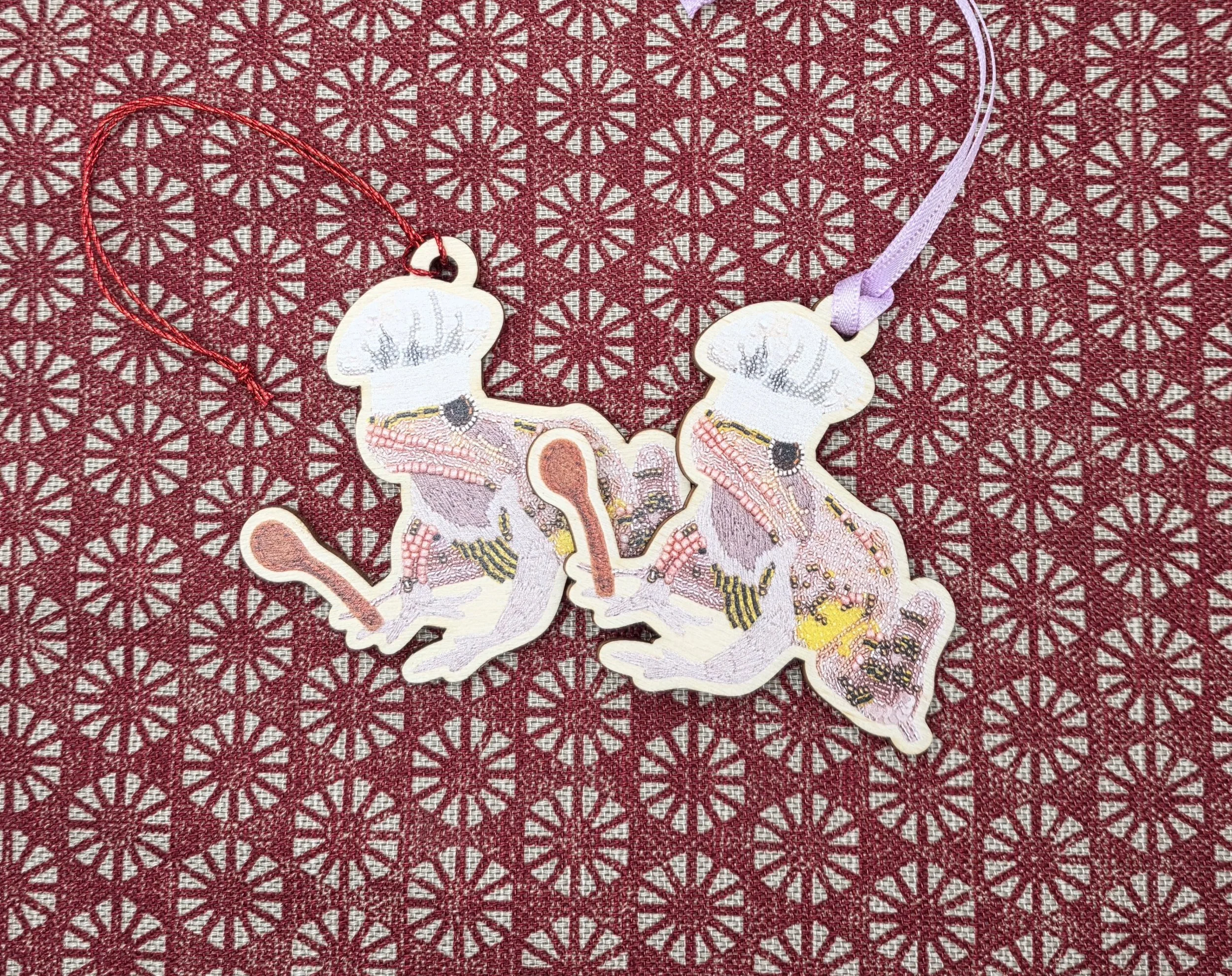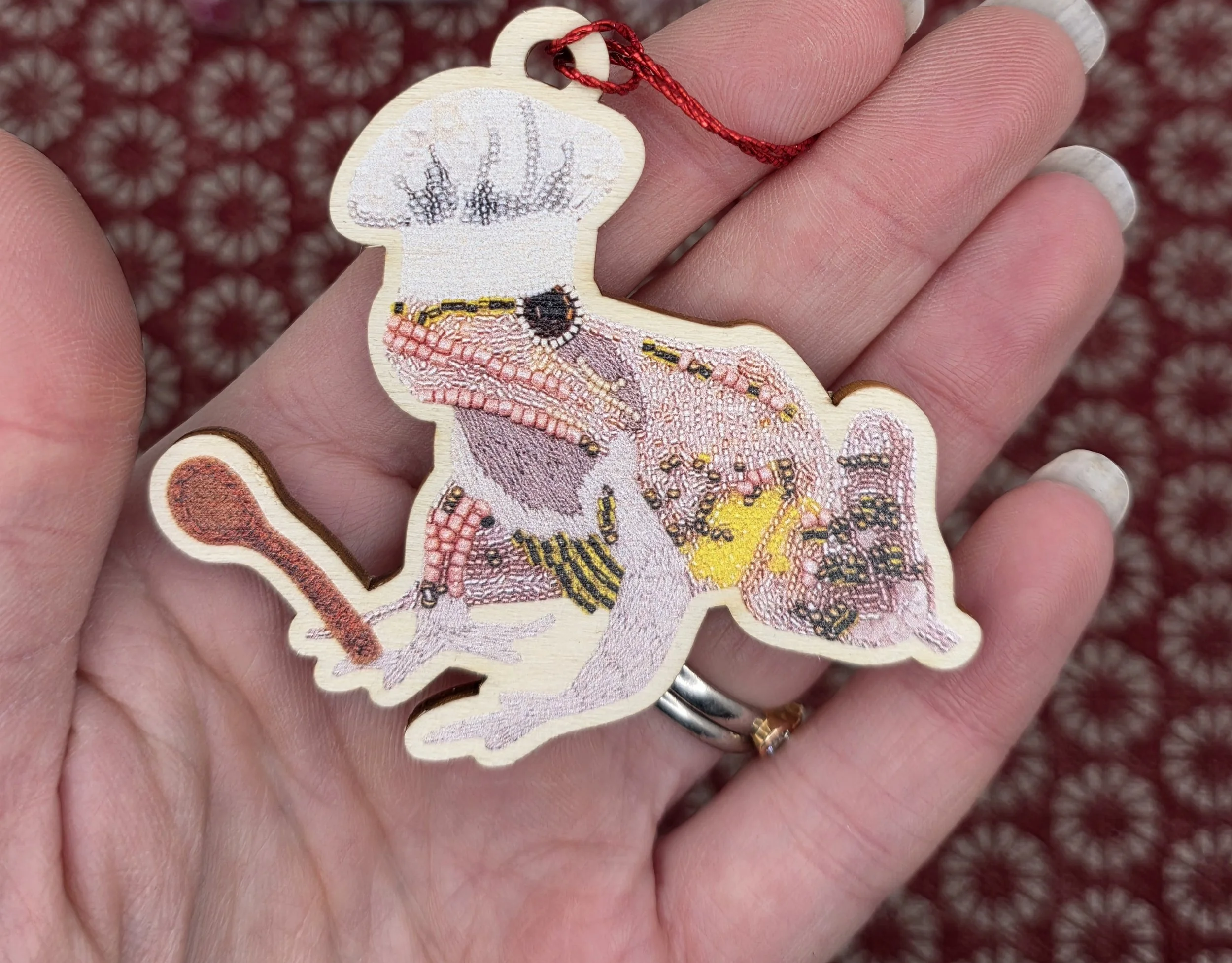 Finished with a red ribbon for hanging and backed with care, it’s the perfect addition to your tree, gift wrapping, or seasonal decor.