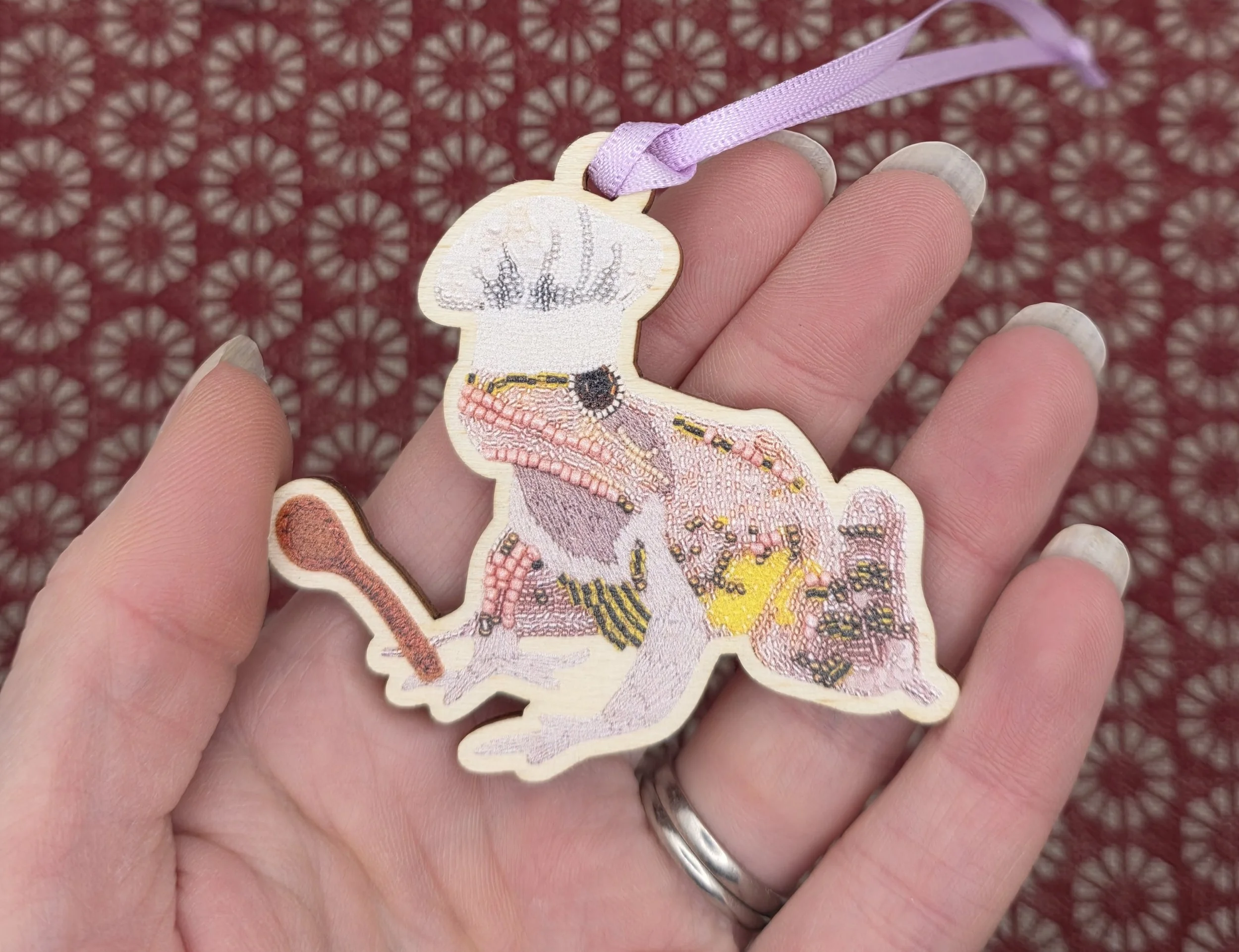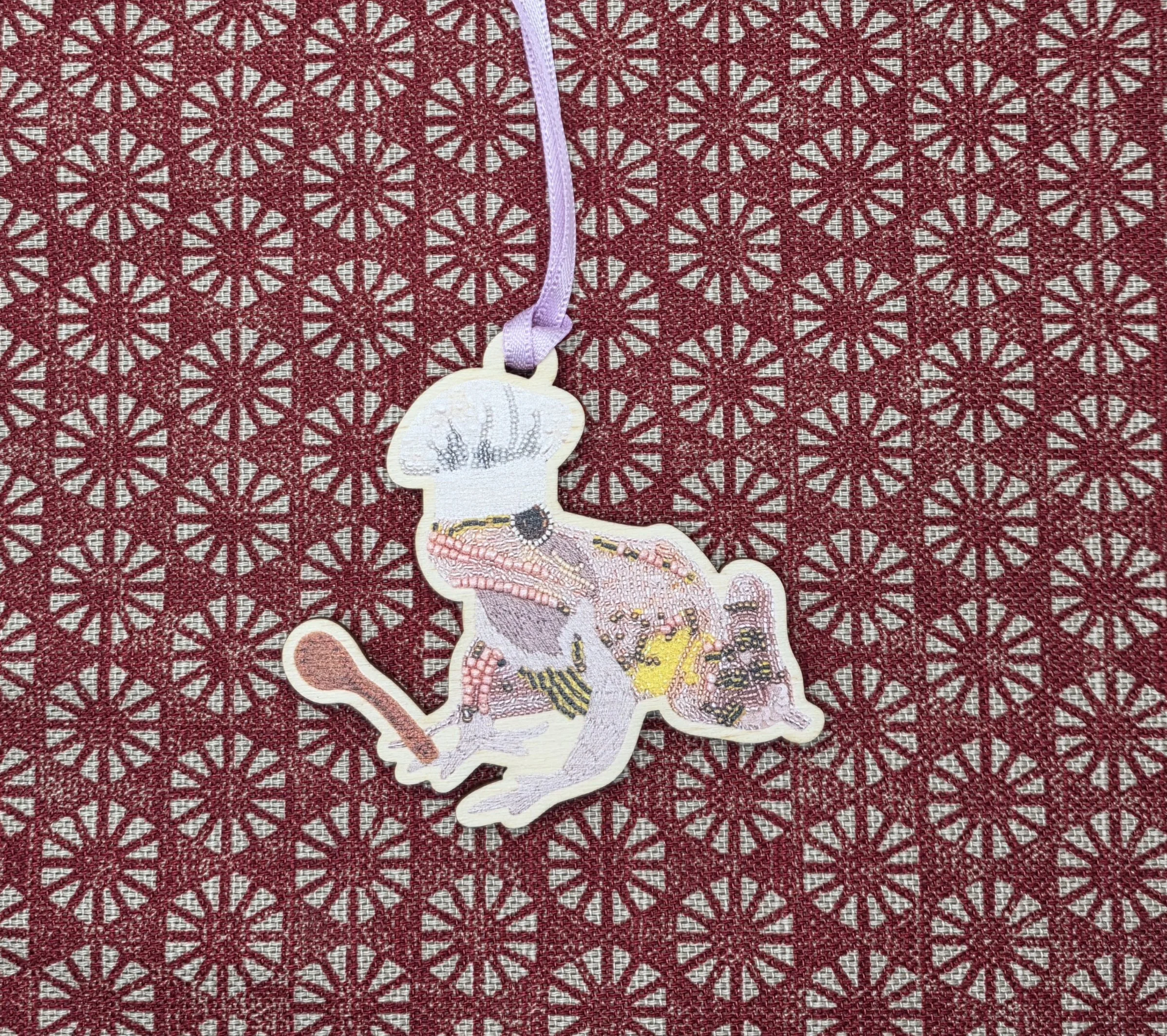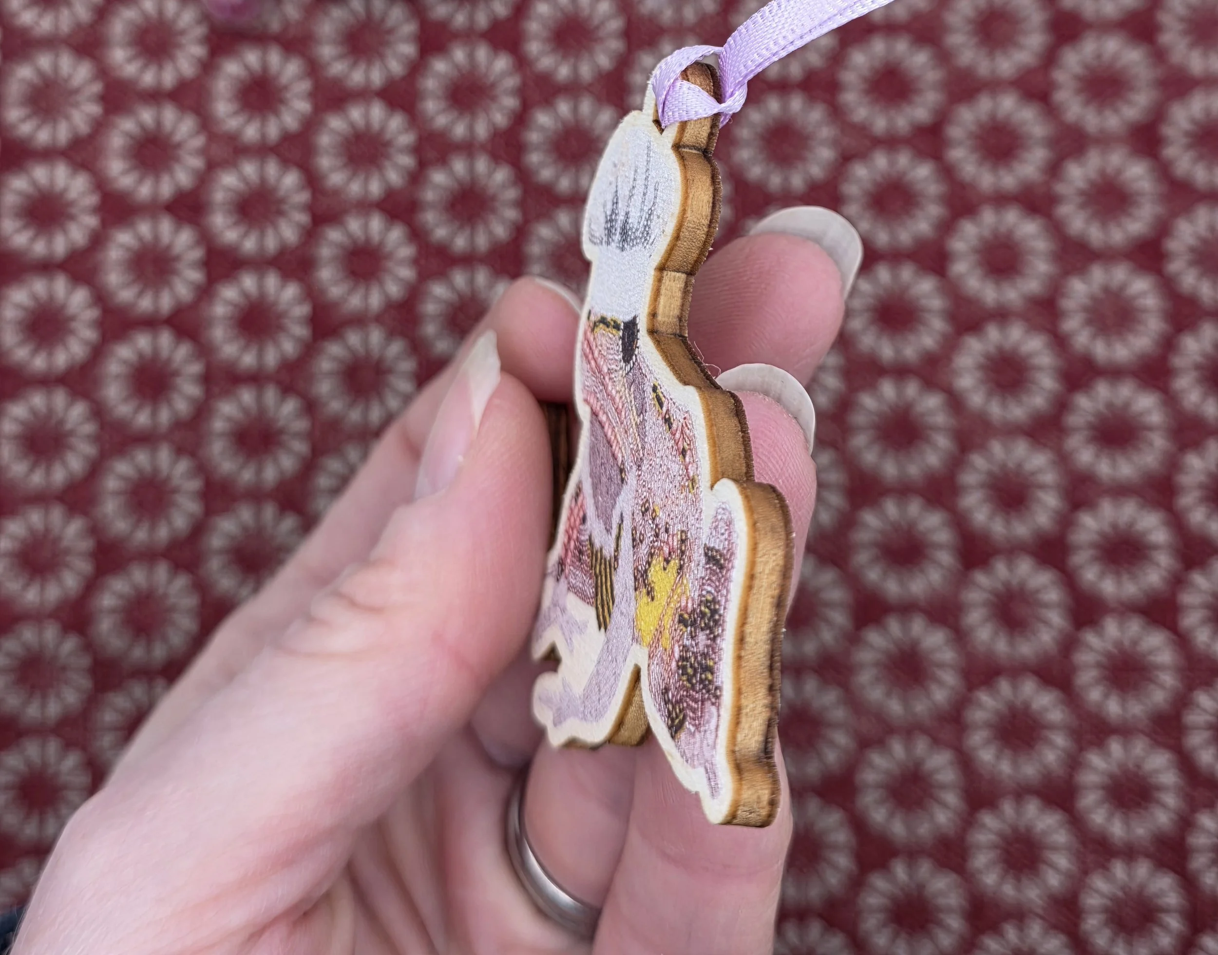 Finished with a red ribbon for hanging and backed with care, it’s the perfect addition to your tree, gift wrapping, or seasonal decor.